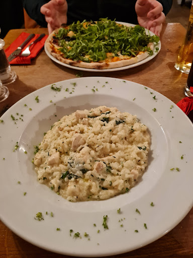 The food was quite Anglicised - large portions, with an English course setup. The portion sizes definitely wouldn't allow a classic italian course experience! I had breaded mushrooms as a starter, which were not fresh (I'm assuming frozen). The mushrooms were high in moisture content and fell apart when cut. The 'Milano' pizza, was for the main, which was average. Too much mozzarella, not enough goats cheese; covered in a carpet of rocket. The caramelized onion was lovely though! My partner had the risotto, which was really good (although it could have fed both of us!). The desert was lovely.