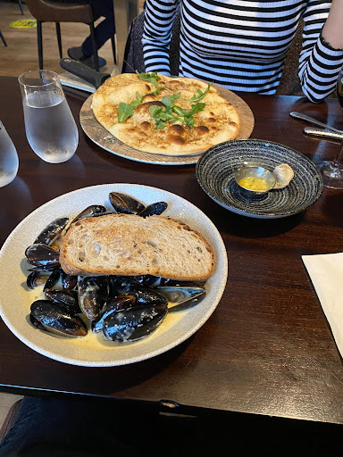 Read moreWe ate here last Monday with two good friends. It was quite a small but cosy restaurant. We all really enjoyed our food whi h was plentiful. We shared a garlic bread to start which was very light and very moorish. I could have had another, but unfortunately I wS I. The minority! I then had the Moules frites in a tomato and chilli sauce. I had a huge plateful and they were delicious. They came with chips (unfortunately the frozen variety) but I had to ask for bread tosoak up the delicious sauce, which was not too hot. My wife and friend really enjoyed the salmon and prawns on a creamy mashed potato and asparagus. While our other friend had the chicken, which she also enjoyed.