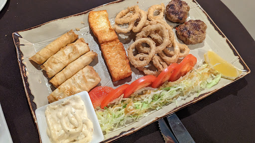 The spinach and cheese borek looked like a spring roll and tasted like it was filled with boursin cheese and had absolutely no similarity to any borek I had ever tasted before, the salad was sloppy, very overestimate dressed and dripping wet, I’m still confused by the bread, it wasn’t pita, more like hard focaccia, the dips were definitely store bought as was the falafel, the mains were okay but not great I left the majority of mine, the wine was pretty poor and the service just okay.