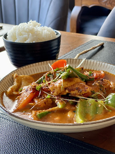 The starters were terrible, reminiscent of something straight from a supermarket freezer. The fried tofu was dry, tasteless, and served without any sauce—we had to ask for it separately. When the mains arrived, things didn’t get any better. The chili used was cheap and bitter, clearly just low-quality powders. The jungle curry was extremely spicy, which I usually enjoy, but it had an overwhelming bitterness that made it unpleasant—more like something from a cheap commercial food stall than a proper restaurant. The noodles were average at best.