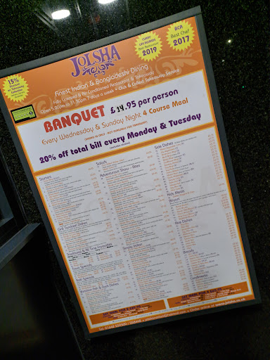 Me and my parents went here for a nice meal as we have wanted to go to an Indian restaurant for ages, and so we decided to come to Jolsha, Norton. It took only a few minutes before we got seated, which was good since the day we went was extremely busy. The atmosphere was nice and we felt welcome but the tables were really close together so everyone was packed in quite tight, but this wasn't much of a problem for me. This restaurant isnt wheelchair friendly by the way, as there is not much room to maneuver and there is a large step to get inside the restaurant. A waiter brought out 4 dips (without asking - and this happened to everyone) and poppadoms. We assumed these were free as they were given out without asking, but later on we were charged for them! Each dip being over £1 and the poppadoms being £1 each. The other problem was that it took 1 hour and a half for our food to come! And this is the normal sort of waiting time - there werent many people in the restaurant actually eating because barely anyone had their food. Although, we ordered a cheesy naan, peshwaari naan, egg pilau x2, lamb pasanda, chicken korma, king prawn tikka masala and anion bhajis. The food here is very filling and extremely nice, and I would still go here again. It was still a nice experience even though there was a long wait - but if anyone at Jolsha is reading this - prioritise your in store customers over takeaway orders and have...
