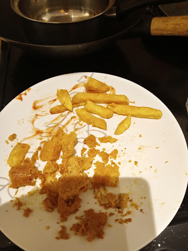 They were clearly reheated, hard, and tasted like they'd been sitting around for hours. The oil was probably ancient. Every bite was a sad, greasy, crunchy experience. There was no fluffiness, no satisfying potato flavor, just a lingering taste of old oil and disappointment. They weren't even remotely fresh. They were, for lack of a better word, shitchips.