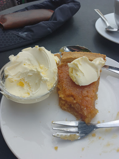 Vegan food options on the menu. Vegan chocolate cake and vegan treacle tart available on the day we went but sounds like the cake options change regularly (lots of other options too). I had an iced oat milk coffee with caramel syrup which was amazing! And the treacle tart with soya cream which was equally amazing. Dog friendly at the outside seating and dog treats brought out...