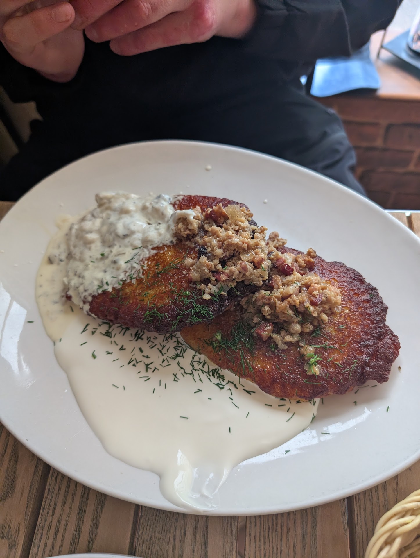 Read moreWhen we came we had to wait a longer while to be seated, my husband went to get a waiter, otherwise we would stand there forever. A blonde lady serviced our table, she was quite nice thatâs why I gave two stars. In other case would be one or ether zero. We placed an order and got drinks quite quick, but were waiting for food nearly 1,5 hour! I wanted to leave, honestly. Its ridiculous as we ordered simple margarita pizza, and two mains (chicken and potatoes). I ordered a puree but got roasted potatoes. My first thought was ok, I wonât be complaining because itâs gonna take additional time. But potatoes tasted very bad, like burned, old oil. The waiter asked if all good with food- then I mentioned about mistake in order and got puree quite quick. But this was nothing like puree- potatoes blended with water (imagine consistency) without any salt, completely tasteless. I left leaving full plates, consumed only veggies from the salad. Apart from that pizza was âokayâ, grandmother schnitzel as well. My husband told waiter about food but they did not even consider to compensate. Regretting now that didnt took any pictures! Waste of money and...