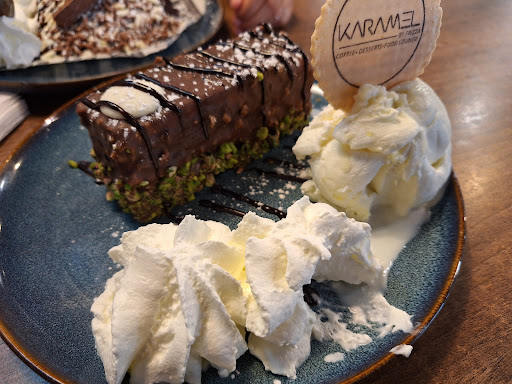 Honestly didn't have high hopes about this as we've been let down by pudding places before. We were very badly mistaken. I ordered the cookie monster pancake -choc chip pancake with sauce and crushed Oreos and flake . Drool so soft and fluffy and thick. GENEROUS amount of sauce and toppings-not on the sickly sweet and too much side... Cute little branded sugar wafer on top. Husband had the cookie dough bueno. Drools again warm cookie dough with sauce, crumbled chocolate, a stick of Bueno and a flake, with a cute branded sugar wafer on top too. Came in a 7" pizza box, not much room to spare in either of them!