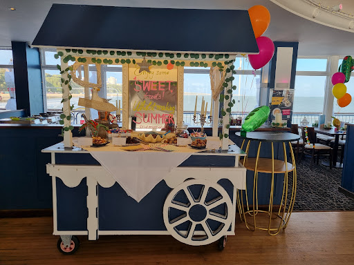 For a cafe built on a pier, it seems woefully out of its depth. Noting the āTable service onlyā sign, we looked at the cake selection, made a note of what we wanted (a scone cream tea, and one of the 4 slices of chocolate orange cake. We then found seats, checked the menus (just in case) and after a few minutes, dutifully turned the laminated green/red square around, green side up as we were ready to order.