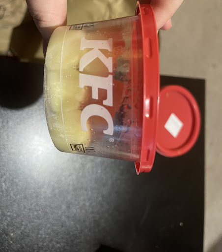 The top wasn't on the Gravy, it was everywhere, The chips and coleslaw were tasteless, I didn't realise that KFC Chicken could be tasteless , But sadly this was the case,