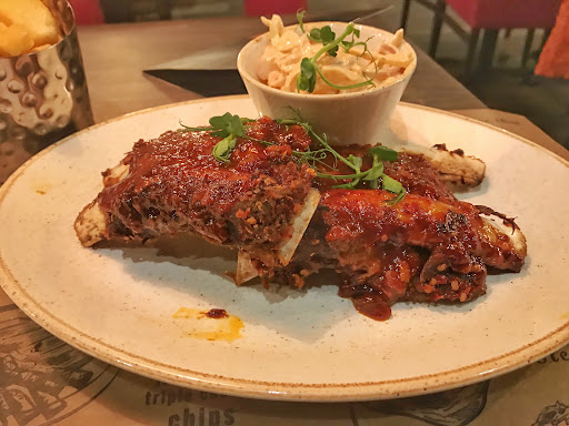 Visited on Thursday 7th July as a group of 4 for a birthday, we ordered the crispy chicken & BBQ ribs starter to share, the chicken was basically a take on dynamite shrimp except the batter was huge and the chicken pieces inside tiny 😂, the sauce lacked any real punch of flavour, the BBQ ribs were decent, nice sauce & presentation however this starter arrived 10 minutes after the first one, the chef in the kitchen and the manager out front should know it’s basic knowledge that all starters are served together.