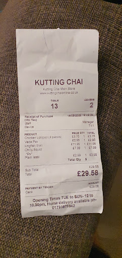Kutting Chai at Swindon has over exceeded our expectations and has even beaten London Restaurants by Miles.