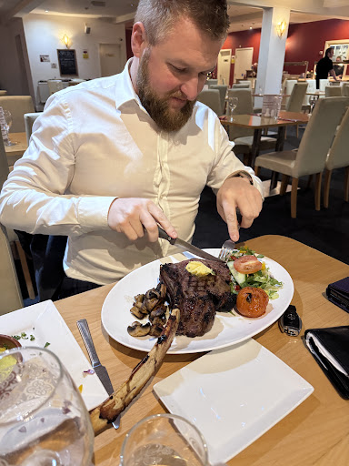 I went for The Beast – a massive steak, also called Tomahawk by the chef (who I suspect might be Spanish – which would make sense, given how truly Mediterranean the kitchen feels). Whether it was 32oz or 42oz, I’m not sure – but the size and presentation were unforgettable. Served on the bone, grilled medium-well, juicy, rich in flavour… easily one of the most impressive steaks I’ve ever had.
