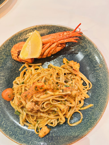 For our meal, we started with a perfectly baked pizzaâcrispy crust, fresh toppings, and just the right amount of cheese. The prawns were a highlight: tender, flavorful, and cooked to perfection. Our little one thoroughly enjoyed a delicious serving of pasta, prepared with care and just the right balance of flavors. We paired our meal with glasses of wine, which were expertly chosen to enhance each dish. To end the evening, we indulged in a rich and creamy tiramisu that was the perfect sweet finale to a fantastic meal.
