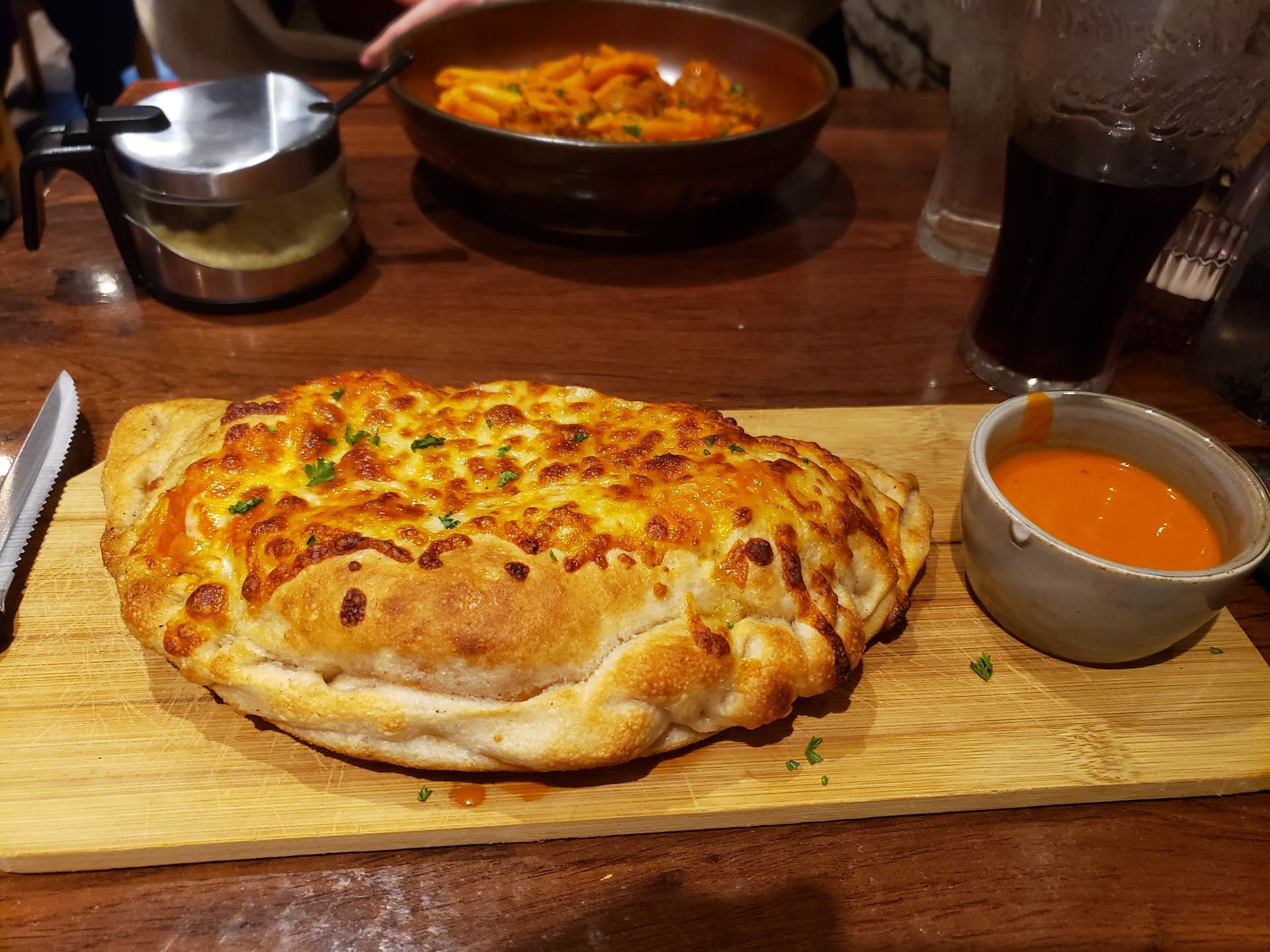 The menu is extensive, traditional Italian and we decide to avoid ordering our normal go-to dishes. I ordered Fried Calamari to start, and a Calzone for my main. My daughter skipped the starters and ordered Penne Arrabiata. While we waited for our food, we were served bread (dough balls) with garlic butter, which were appreciated and very tasty.