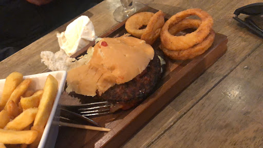 I also ordered the soup of the day, so I have something small to wat while waiting. 2 hours and few drinks later, I was served a microwaved ready made vegetable soup mix.. terrible. I could not believe! Another 15 minutes, here comes the king - the famous Stacker burger! I am not a fan of MCDonaldâs but trust me, their BigMac is the king compared to what you get here for ÂŁ15! It took these guys 2 hours & 15 minutes to prepare 2 x burned frozen patties on plain supermarket buns, accompanied by deep fried low quality frozen chips and onion rings. So disgusting and so disappointing!