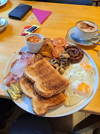 Our friend had journeyed up from London for a week's break staying with us in Teesdale Co. Durham. Anyway we decided to go and do some exploring in Cumbria (where l was born and bred) to check out The Anglo Saxon Cross in Bewcastle church yard. Lanercost was on route so we decided to make it our first stop for a coffee. We walked in and were immediately made to feel welcome by the lovely friendly staff. Our original intention was to get a coffee but looking at the menu we all decided to get breakfast. Both my wife and our friend opted for the Eggs Benedict whilst I decided to go for the Bigger Full English breakfast to keep me going all day. The Eggs Benedict's were according to the Girls absolutely delicious as was my breakfast. I asked for my toast not to be cut and we had a little laugh with the staff who said l know what your going to do your going to construct toasted sandwiches aren't you, which is what l always do when having a Full English. The meal consisted of 3 slices of bacon, a Cumberland sausage round, 2 eggs, a full fried tomato cut in half (not tinned) mushrooms, beans, some fried potato slices and 2 slices of toast. It was absolutely delicious and l couldn't believe how much it cost £10.50 for all that! Wow excellent value for money for everything we had. We will definitely be making Lanercost Tea Rooms a regular go to destination when we fancy...