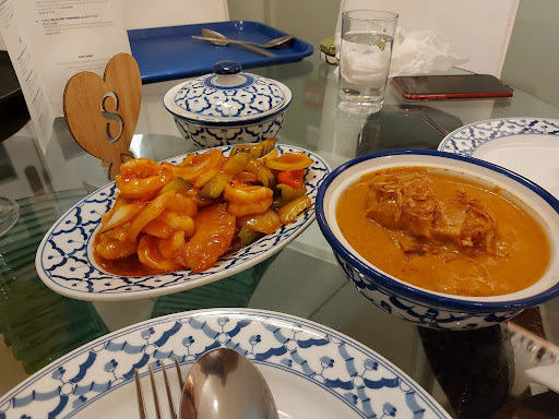 What a wonderful gem of a restaurant !! A real diamond !! It's kind of small but the food is fabulous! We ordered Massuman Curry with chicken, sweet and sour king prawns and egg fried rice. The food was really first rate. The chicken was succulent and chunky and the curry sauce was rich and tasty. The sweet and sour dish had plenty of peppers, onions and real pineapple with a generous portion of butterflied king prawns, in a tangy sauce. The egg fried rice was really nice. Again, the portion was generous. Finally, we shared an ice cream; white chocolate and honeycomb. Another generous portion, topped with cream, clotted cream and chocolate sauce. Fabulous !! If we'd had one each, we would never have finished !! All in all, a really splendid meal at a reasonable price !! Absolutely a must if you like Thai food. Five stars? This establishment deserves 10 stars at the very...