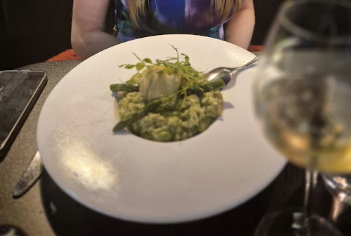The food, both, my wife's green risotto and my mixed grill were well seasoned, with tender asparagus, broad beans and lamb respectfully. They tasted absolutely delicious. Likewise our goats cheese and beetroot starter was, warm, flavourful and indulgent, 10/10.