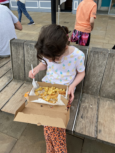 The best fish and chips we have had in Scarborough. Tasted delicious, non greasy and perfect portion sizes. We love how you do kids sized portions for a really reasonable price- as we found that many other restaurants don’t offer this (just to note the picture of my daughter eating her portion- had devoured most of it already). I also love the fact that you are actively trying to be as eco friendly as you can- my daughter wanted a cone and you had cardboard alternatives rather than the foam- not only delicious food but eco responsive too- well done! The lady who was front of house was really polite and friendly- even though it was really busy - the service was seamless and with a smile- my little girl was excited to pop her head in and say thank you again on our way home. The main fryer man whom we presumed was joint owner with the lady- was incredibly attentive to the orders he was getting and was dressed really smart- just adds another reason to return- as all was really clean, staff were smart and happy! We noticed the 5 star food hygiene cert too- which I always look for. A gorgeous hidden gem- situated just at the corner of the car park we always use opposite the famous joke...