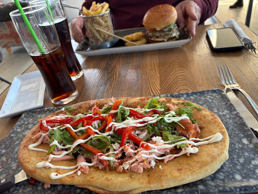 Read moreThis place is in a great spot overlooking the harbour, we went in and it was quiet, good really as we had 4 kids and the dog with us. Other reviews have said staff were rude but we didn't find this, we had 3 different people at our table at different times and they were all pleasant. This was a very cold day in December and when we went in we all took off our coats, however they quickly went back on as it was freezing in there! I know energy prices are high but come on guys, you're a restaurant, turn the heating on! We all ordered food, me and my wife had flatbreads and a pot of tea for 2 (only one small cup of tea each!!), the kids all had the kids flatbread (well 3 did, the 4th is a baby) and a hot chocolate. The food was tasty although for the money, the portion size was quite small. The kids then all had a dessert from the kids menu, the chocolate fudge was gone in 2 bites, as was the ice cream sundae, very small portions. The kids had a soft drink with their dessert and we had another tea for 2. We then got the bill to leave and I nearly fell over when it was over £100.00!! For what we got, £100 was ridiculous, it's a nice place and the foods not bad but that's a premium price for bang average food. We definitely will not be back, there are far nicer eateries around where you can get a full meal for the same sort of money. Only scores 3 as it had good facilities, relatively friendly staff and it was a decent place to sit, even if it was...