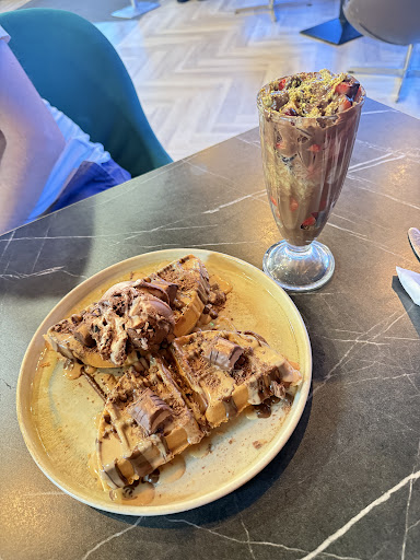 Read moreWent to the little desert shop with a friend for the first time... Walked in and they had 80's Bon Jovi playing of which i love but don't really want to listen to that while i'm out at a restaurant and is playing rock music really the atmosphere for such a kind of place?! 🤔🤷♂️ We were shown the table by the back wall but would've been nice to have sat at the front of the shop personally. On sitting down i notice the smashed window, hardly a nice look is it! A mop bucket in full view of customers, a table behind us cluttered in random objects and hearts on the ice cream stand that look like they were cut out of coloured paper 😆 Sat chatting to my friend and i noticed how cold it was as if they had no heating on at all. As for the food... We were handed two big menus with the vast array of choice on offer, i decided to go with something more plain so opted for the banana and strawberry crepe. It arrived after awhile and on initial bite i thought the crepe tasted crispy and chewy like it had been in a microwave, definetly not value for money at £7.95!! Overall the dish was OK but it didn't wow me at all, just tasted like something i could make at home. As for the strawberry gelato, well it just didn't go with it and some nice vanilla ice cream would have been much better in my opinion. Verdict... Would i go again? Probably not! No real atmosphere because barely anybody was in there. It felt cold and the music doesn't really suit the shop, the food is OK but not spectacular and overall the experience is a let down and not all that great! It...