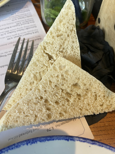 Ate here today for what was intended to be a late lunch (2pm) after a long drive from London. We waited over 1 hour for food. The bread with my food was hard and stale (picture attached) and the waitress got me a knew serving of bread when I asked (thank you) and didn’t appear to be surprised at the request . The bread was hard the way bread gets hard when it’s left out .