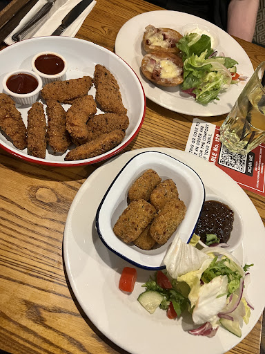 Read moreFantastic Experience!...We asked for a table by the Window so my partner could see his food better as he's registered Blind.. We were led to our Table & asked if we would like a drink while we checked out the menu!...The Server Dave was lovely...He Explained the dishes to us & showed us which were the 2 for £10!...There was a chicken & Leek Pie & Steak & Ale pie...Fish & chips & even Grilled Fish...Also curries included!... They do a Vegan menu & they do a "Specials" for each day! For e.g. They do Certain Steaks & a Bottle of wine for 2 on a Friday for £22...All good Hearty Food!... We asked if the fish was Frozen & Dave was honest & said Yes it was defrosted the night before...So my Partner picked the Battered Fish & chips & I chose Lasagne!...My partner thoroughly enjoyed it & said it was very tasty!...I had the Strawberry Mocktail which was really refreshing!...Dave explained the Strawberry "cordial" they Normally use was not available but they had a Strawberry & Rhubarb one which I really enjoyed!...it did cost extra for the lemonade instead of soda which totalled around £3.25 for one drink which is quite expensive I think for what it was...but it was a nice change from the lime & soda I normally have!...The Lasagne was tasty but a bit more sauce would have been nice...I enjoyed the salad the Lasagne came with...You can choose a smaller salad & a slice of garlic bread instead for free which is a nice choice!...My partner was asked if he wanted Bread & Butter with his Fish & Chips which he chose!...This was extra! Around £1.35 I think...it Was Crusty bread which was warm & he enjoyed that!...There was a choice of Mushy or garden peas!...The main meals were 2 for £10...There was "just enough" food!...Nothing worse that too much food & lots of waste!... So onto Dessert...I was recommended the "Salted Caramel Sundae" which I had already decided on so good choice!...I could have eaten 2! Gawjus!!...My partner picked the Jam Roly poly which comes in a slab & the custard separate! He thoroughly enjoyed that too...Washed down with a pint of lager! £3+... The drinks were more expensive than the food!...Even though the meals were 2 for £10 The Bill came to £26+ & I gave Dave £30 in Total as he was a great Server!...He Thanked us for the Tip & told us to have a lovely Day...I hope he serves us every time we go in...I will ask for him personally if he's available!...Will try the Sunday lunch next time I think!...So all in all we will be back!...Very Friendly...
