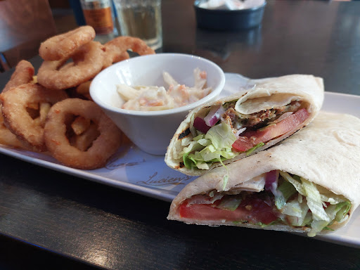 Read moreThe Fever-Tree ginger ale was really good and it was lovely and cool inside as the windows on the front open right across. The down side was, though they had two beer pumps, they had no handpulled cask beers on. The blonde haired member of staff who I asked didn't even know what beer was, she just looked at me blankly with a big throbbing think bubble over her head which could quote easily have written in it "What planet are you from?" A more switched on member of staff explained that they don't have the cask beer on when it's hot. Hmmm, pubs manage OK...... The other main downpoint was what I was served, which was described as: "Falafel, a flour tortilla packed full with chickpea and onion falafel, red onion and lettuce, drizzled in mayonnaise." Harrumph!!! Packed full??! Quelle larf. It was very dry as there was no mayonnaise drizzled on it, and I cannot for the life of me see what part of a slice of tomato, a bit of shredded lettuce, red onion and half a crumbled falafel constitutes as packed full..... The photographs were taken before I had eaten any of it. I had just cut them open as they didn't seem that full. One wrap had half a crumbled falafel in and the other had one in. Underwhelming, unimpressed and at 5p short of 9 quid, seriously, seriously overpriced. I had paid an additional £2.95 for a side of onion rings and the chips that came with it were ok as was the coleslaw. Not a place I would revisit as it was an overpriced and meagre tortilla that was all wrap,...