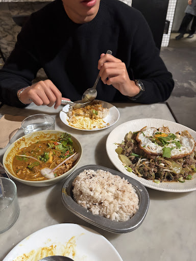 The interior was nothing special, just basic decor that didn’t add much to the atmosphere. We were eager to try the sea bass and pork krapao, both of which sounded great—especially the sea bass. Unfortunately, we were told they didn’t have the sea bass available. After considering the other pork dishes, we opted for a khmer curry instead, not wanting two pork dishes. Only after placing our order did we learn that they only had minced beef for the krapao, which was disappointing. The khmer curry was good, but the beef krapao was a complete waste—nothing like what we expected from the dish. It also doesn’t make sense to have beef in pad krapow. So overall, even though we were the only ones there, they didn’t have two of the items we wanted on the menu, and there was no offer to compensate for that.