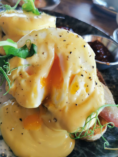 What a pleasant place to visit for breakfast! The staff were friendly and attentive, and the food was absolutely delicious. This is far from a greasy spoon. After having my fair share of boring old English breakfasts in the past, I decided to try something different and went for eggs benedict. Let me tell you, it was a game-changer! With two perfectly cooked eggs and a scrumptious sauce, it left me wanting more. They had to substitute the ham with bacon since they ran out, but who doesn't love bacon, right?