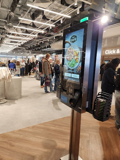 We have just visited this M&S cafe. Upon entering it was very busy, to be expected as it was a Sunday afternoon at the Mall. We went in past the new electronic ordering stations to see if there was a table for 4, as there was 3 of us. We were then confronted by a member of staff asking if we were ordering, we said we were just checking for a table. She rather rudely said she wouldnt have let us order if there wasn't room!! We proceeded to order and sit down with an electronic disc, however there were no tables for 4 available, and we couldn't pull 2 tables for two together because they had not been cleared - we had to resort to pulling another chair up to a cleared table for 2. However the staff then proceeded to keep bumping into the chair sticking out, despite there being space to walk around a different route. The staff were clearly not equipped for it to be slightly busy, not all the tables were filled, with managers shouting at members of staff across the restaurant, not very professional or a nice environment for a coffee and cake! When it eventually came out after us seeing it sitting on the pass going cold, the cakes were lovely, although the mocha was only so so. Not the best experience and would put me off coming again if they were even a...
