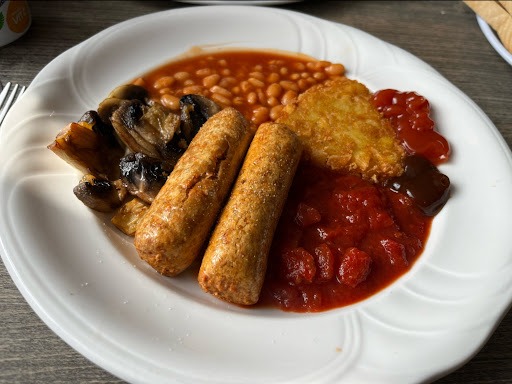 We opted for four "A41" breakfasts, which offer one slice of bacon, a sausage, egg, mushrooms, a hash brown and beans, along with a round of toast. We asked for certain items to be swapped for others and the team were very accommodating. In addition, each breakfast comes with a big mug of tea or coffee that is made at the counter while you wait.
