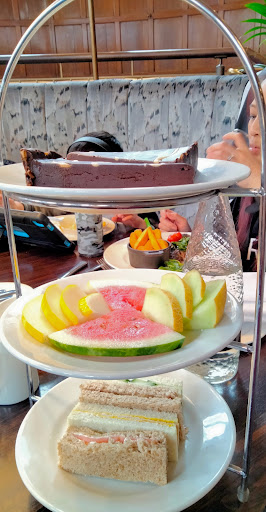The afternoon tea was brought out, I felt short changed.. I didnt feel like they made an effort to catered for it. Pieces of fruit to replace the scones is poor effort, I could have made it myself. Id finished the savoury, moved onto the cake and my husband told me to wait because he saw what he thought was nuts on the bottom. We checker with the manager, they returned after speaking to the supplier and confirmed it was nuts. There was an error on the allergen notes which was provided the suppliers and nuts was obviously missed out. This could have been very serious incident as allergens have been in the centre of alot of news reports in recent years. Could have resulted a hospital stay or could have been even worse but thankfully I didn't not eat it.