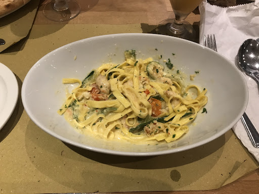 First of all the staff are all lovely and deserve 5 stars each. However I ordered the linguine vulcano which is supposed to have chilli in it and asked for it has hot as you like. Whilst the dish did taste nice, you cannot call something vulcano, advertise chilli, and make it less spicy than a can of tomato soup! The second issue I have is the miniscule portion of ice cream I received for my dessert. One scoop, a very small scoop at that, and smaller than the child's portion served to our table! Also the noise was horrendous, if you want a quiet table to able to talk to, and hear, your dinner companions this is not the place for you.