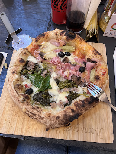 We were running five minutes late due to traffic, but notified the restaurant. When we arrived, we were given a table near the door, which was a little drafty but it was ok. We ordered pizza and pasta which was (as always) very very good - especially the pasta. They had a couple of larger tables in (6 people) so service was a little slow for things like drinks, but it wasnāt too much of a problem at this point.