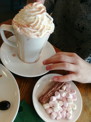 Read moreAs a family of 6, plus dog, we were happy to find this dog friendly cafe on a chilli winters afternoon. We headed upstairs where we found ample seating for our small crowd, then popped back down to order food. I had a large hot choc, that per another reviewers pic, came with the marshmallows and flake separately, but I didn't really mind. 🤷♀️ Husband had a sausage roll and tea, kids had cake slices as big as their heads 😂 All was enjoyed and consumed whilst we sat upstairs on comfy chairs. There only a couple of staff, so I understand why taking your own drinks/food is necessary, as it would slow down service if they were trying to provide table service too, but if you are elderly or unsteady on your feet, the staff are more than happy to help. We would...