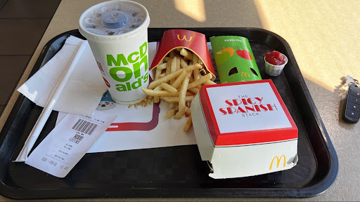 Read moreThe food was okay, it's McDonald's so you know what you're getting. Will never be amazing, but it was fine and for convenient food in a rush it serves it's purpose. What does need a special mention though was the service received. The young dark haired lady who served us was exemplary. She was dressed differently to other staff so not sure if she was a manager or supervisor, but she went above and beyond repeatedly. First she came and asked if my young daughter would like to enter their colouring competition, then she brought us our food and my daughter didn't approve of the toy she received. I went to the counter where the lady was stood and she was excellent, she went out back and found at all the toys they had remaining and let me choose. She also gave me a book containing activities and stickers for my daughter. My daughter was delighted to have a different toy and extras thrown in. Then the last time I saw the member of staff she had spray and cloth in hand wiping down and cleaning up near the bins. I felt compelled to write and acknowledge her excellent service, always friendly and smiling, as it's not often you get treated so well anywhere, let alone it being a McDonald's. She was a credit to the restaurant...