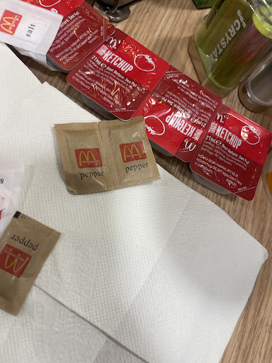 No menus on the screens in the drive thru, instead an advert for the 6th coffee free when you buy 5 (yeah... just what you need on a hot sunny day) or the new chicken burger (if I wanted a chicken burger I'd have gone to KFC). First sighting of a menu was when you pull up at the order here point, as I was trying to decide from the limited selection on display I was constantly greeted (by a young lass who sounded like she seriously didn't want to be there) with "can I take your order, can I take your order, can I take your order" after I ordered a burger from memory that McDonald's sold them (as it wasn't on the limited menu of six items) I was asked "does that complete my order. Now I'm sorry but with only 2 people in the car today 1 burger doesn't really sound like a sharing meal does it ?. The next order was also from memory as again wasn't on the menu board of 6 meals, wrap of the day or mozzarella dipper box. Be great to see a full menu and make an informed choice!!!
