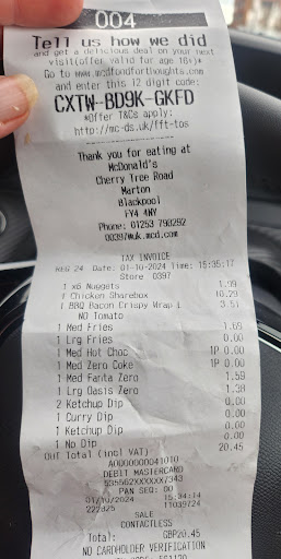 Read moreOrdered via the Macdonalds app to once again have a large item missing double qtr pounder with cheese. £6.09 according to the app. On phoning store for help on what to do twice I was instructed to request refund for item via uber (just the company that delivered it not the store that admitted fault). Was offered a replacement if I could make it to the restaurant a 1.5 or so away. Being home with children and no transport at the time I declined. Over 1 hour attempting the very confusing instructions on this I received email of my item refund up to 15 days hence. "Item description :20% off whole order -5.79" then"flat fee refund item -2.82" "Total refund £2.82" 👏 At least I'll be able to get the bus to work with that in 3 weeks time 🤣🤣. Tbf last time PayPal decided I was a liar and didn't refund (someone else's much much smaller order). I hadn't ordered in maybe a year but I'd had a long day. At least my diet is still going well still now. 😅🤣 Moral of the story is don't trust the staff here unless you pick it up yourself and or pack...
