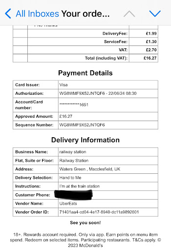 Read moreSlightly disappointed, I ordered my food after scanning my points at the self serve kiosk, came relatively quickly which was great. However, while I was waiting for my food, I decided to order a mcflurry, but I only had cash on me, so I did what I needed to do at the kiosk up to the point were I had to pay, I selected pay at the till, while waiting for a good few minutes, my food came, but no one had been to the till.