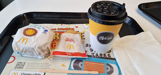 Just been to this McDonald's located right next to the Tesco for my first ever McDonald's in 3 years and arrived around 11:30pm. I didn't read the reviews here first but the electronic doors were locked from outside access it seems and you could maybe push them open manually, but after trying to get attention maybe walking round to the drive thru I knocked on the door and was talked in store access isn't a thing at that time, which is fair enough. I came from out of town as it's one of the only options for late night food so then went round the drive thru as advised.
