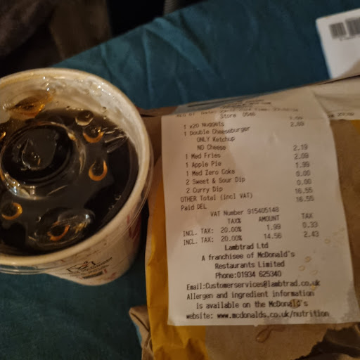 Really bad night here on the 6th June going into morning of 7th June. Went through the first time everything seemed normal untill the last window when I was handed 4 drinks individually, so I obviously asked for a cup holder. Then tried to quickly check the food was there, noticed there wernt any sauces so I tried to get the attention of the worker who had quickly shut the window as soon as he handed over the food. He then gave me the wrong sauces after asking me what sauces I ordered. Once I left the window I noticed that the coke I ordered was a coke zero and one of the burgers was missing..... coincidentally both items were part of my meal. So all I had was some very stale cold fries.