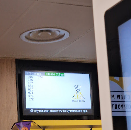 Read moreBeen a few times, usually one of the better ones, went today and was very disappointed, used the electronic ordering thing, no receipts seemed to be given on any of them, told a member of staff who couldn't be less bothered, luckily I managed to catch the order number on the screen before it went off. None of the order screens were switched on that say when to collect food, then waited nearly 20 minutes for our food to be ready. The place wasn't very busy, don't know what was going on. They'd prepared some of it at the beginning, which then sat on a tray for 15 minutes so by the time they finally finished the order we had stone cold fries. The food was nice, however the service today was the worst I have experienced in any mcdonalds for a long time. There used to always be a young lad wandering round asking how everything was and in the past this has always been one of the better mcdonalds in my opinion. Maybe they need to...