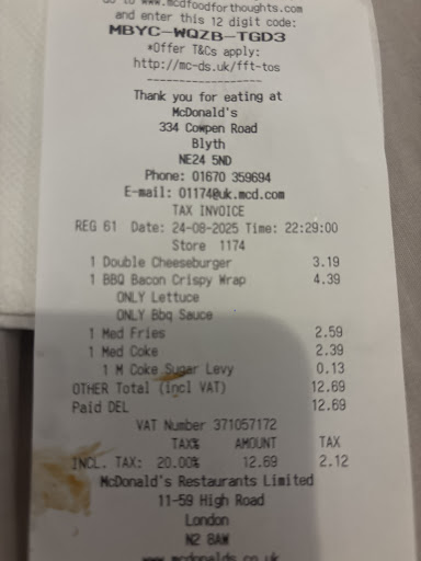 Read moreBeen up all night with our very poorly nearly 2 year old. Thought I'd go get the family a mcd's brekie. Got a couple of muffins and a bottle of milk for the little one.