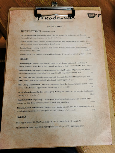 Read moreSeeking shelter from a chill, but sunny day, we chanced upon the Meadowside Cafe. What a find. Thinking we would only drop in for coffee, we saw the menu and stayed for lunch. The extensive menu, full of delights, served to provide us with a three cheese melted sandwich on toasted sourdough, and I had a fantastic surf and turf burger with really crisp fries and very generous shrimps. We topped off the lot with a serious flat white and a delicious hot chocolate. Zoey the dog even got a fab biscuit, from the welcoming, knowledgeable and dog friendly staff team. In Dent? This is the...