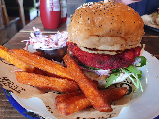 I was tempted my the humorous named "Boom, Boom, shake the shroom" but due to my utter hatred of mushrooms I instead went for the "Green Cow" which was a very tasty vegetable burger with a beetroot base giving it the colour. Myself and my friend opted for the lunchtime special which gave fries and slaw for a discounted package price. The sweet potato fries were tasty and the slaw was OK but I wouldn't say it was much to write home about, but as part of the deal I suppose it was OK.