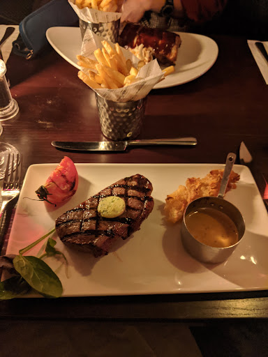 Read moreFirst time at Miller & Carter. Came with friends who had been before and loved it. Much roomier inside than it looks, tastefully decorated and quite pleasant. The service was excellent and our server Yasmine was very attentive & friendly but not intrusive. There was a longish delay between some courses but not enough to question as it gave you time to chat rather than having your food thrown at you as if they wanted you in and out we never felt any pressure that way. We cannot fault the food in any way at all. First course scallops with crispy bacon and apple sauce (okay I will say we thought the apple sauce was an odd combo to have with scallops but didn't affect the enjoyment of them). Then had the simplest of things next, a wedge of iceberg lettuce with honey & mustard dressing and bacon pieces. My god this was delicious and I would never think of eating iceberg like that! Fab. Main course I had 16oz rib-eye steak and my wife had an 8oz filet steak. They recommend the ribeye medium and the filet medium-rare however when it came the ribeye was more medium-rare which is actually how I prefer it and it just melted in my mouth. My wife's filet was equally as lovely. On recommendation from our friends we had beef dripping gravy and red wine gravy in a pot and a slice of onion loaf both amazing tasting. The chunky chips were cooked just right, crispy on outside and fluffy in the middle. Desserts were chocolate brownie, chocolate orange bomb and New York cheesecakes all totally delicious. Drinks and cocktails really nice. Overall a thoroughly enjoyable evening and really could not pick fault with anything. Value for money? We thought so, maybe not for a regular visit but for a special treat as the bill came to £140 per couple but the ladies had two cocktails each which add up, but saying that we had a meal at The Ship Inn at Barnoldby le Beck a few months ago and that came to £120 for two so in the context of things not that bad and the quality of food and service top class. Well recommended and...