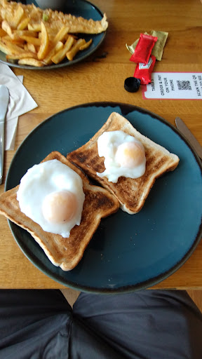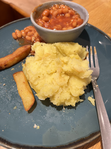 -It was luke warm. -The ‘poached’ egg had been microwaved in a mould so in my eyes NOT a poached egg. -My partner’s fried egg was rubbery and greasy. -My daughter’s mash was yellow and disgusting, unsurprisingly she didn’t eat it. -My bacon was two half pieces so I showed the staff (it was obvious no one wanted to deal with me) and I had some extra pieces added.