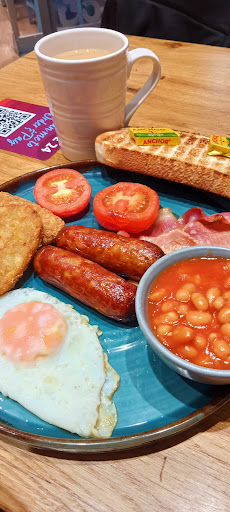 Wow. Saturday 22nd May. Horrible experience. Waited half an hour in the queue with seemingly no one attending to customers. 3 members of staff like rabbits in the headlights. Coffee machines did not dispense milk and the server told me they haven't worked properly for weeks... no notices up to warn customers and everyone in that queue attempting to order coffees of any variety. Still attempting to charge customers for, let's say, a cappuccino when actually we all had black coffees. Card machines not working, cash only, again no notices up, and you find out when it's too late for some. Kids pack lunch boxes had missing items and had giant oranges that no child could peel as opposed to the easy peeler satsuma you would expect. Restaurant wasn't busy but massive delay on food, even for soup! Drinks were cold by the time I eventually put trays down on the table. I was looking forward to an all day breakfast but the sight of the breakfast containers all open throughout the entire ordeal drying out nicely was a real turn off. Absolutely...