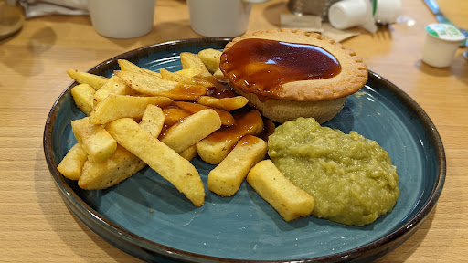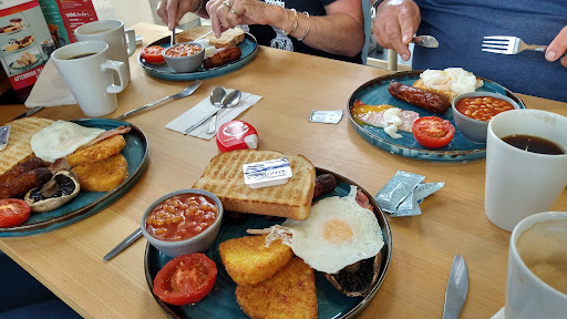 Lovely and quick service but the food isn't that good, could be better. I went for a breakfast. Sausage were perfect, bacon was under cooked and cold, scrambled eggs were like mashed potato, fried bread was just cooking oil saturated, beans were great, hash brown, well I dont like them but seemed what it should be like and the rest I left because I felt sick after eating the above. Was served mushrooms and black pudding which I left. Coffee wasnt up too much but maybe just the one I had, a milky one. Could have been so much better but felt like it was all frozen and they just warmed it up. A bit clinical, needs to be more...