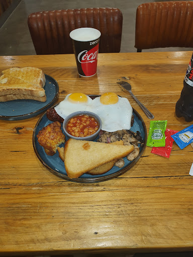 Im not going to write why the tables are not cleaned more often (maybe the customers themselfs could and should take their empty plates to the trolley) or about sometimes sticky floor, all of this is not very important. What is important is the food. I admitt, I only ever had ultimate breakfast from them, which at the moment is £8.50 so creeping up to a full tenner fast. And the food itself is... a bit meh. You get a plate filled to the brim; three sausages, two bacons, two hash brown, two eggs, mushrooms etc I mean theres loads. It leaves you nicely satisfied (if you come with empty stomach, otherwise it might even be too much). But once its all gone, you cant help but get the feeling, it was all rather bland. Bleak? Uninteresting. There wasnt much taste to any of this. I dont know if they source the items on your plate from their own inventory, or is this a third party supplies, my verdict is this. If you are a breakfast connoisseur (on a budget) this will not do and you might not want to return. For everone else, me with even less budget, is good enough. I just hope price wont go up...