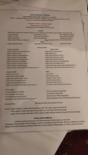 Read moreSo where do I start, the food was great but that's where the good things end unfortunately. Me and my vegetarian friend decided to eat here as I had not been here in a number of years. We made the staff aware that she is vegetarian and that I have a peanut allergy as we sat down for out meal. When our starters came out the meat items were sitting next to the vegetarian items my friend had ordered, so we asked for this to be corrected and they brought us the same food back just separated. I advised the waiter of the correct etiquette in this situation and he did get some fresh food brought out promptly. The waiter was rude after this mishap and the food warmers they used were filthy and covered in what I can only but assume was food from yesterday if not before seeing as we went as the restaurant when it opened at 5pm. Waiting time between dishes was quite long which we would not have minded if we weren’t the only people there. Finally, the extra 10% service charge for December I think is a terrible ploy to take extra money from unsuspecting customers at this time of "giving". All in all, the one of the worst experiences I have had at an all you can eat Chinese restaurant we certainly will not be returning...